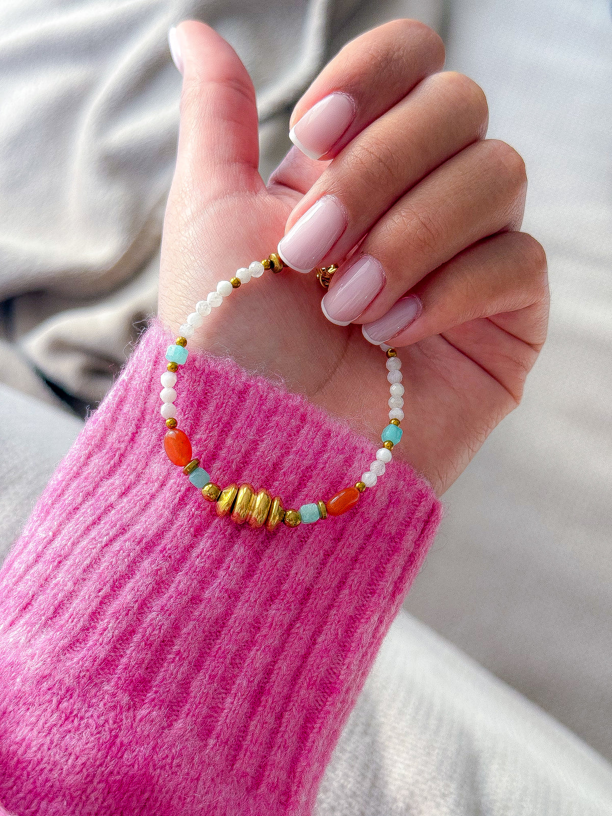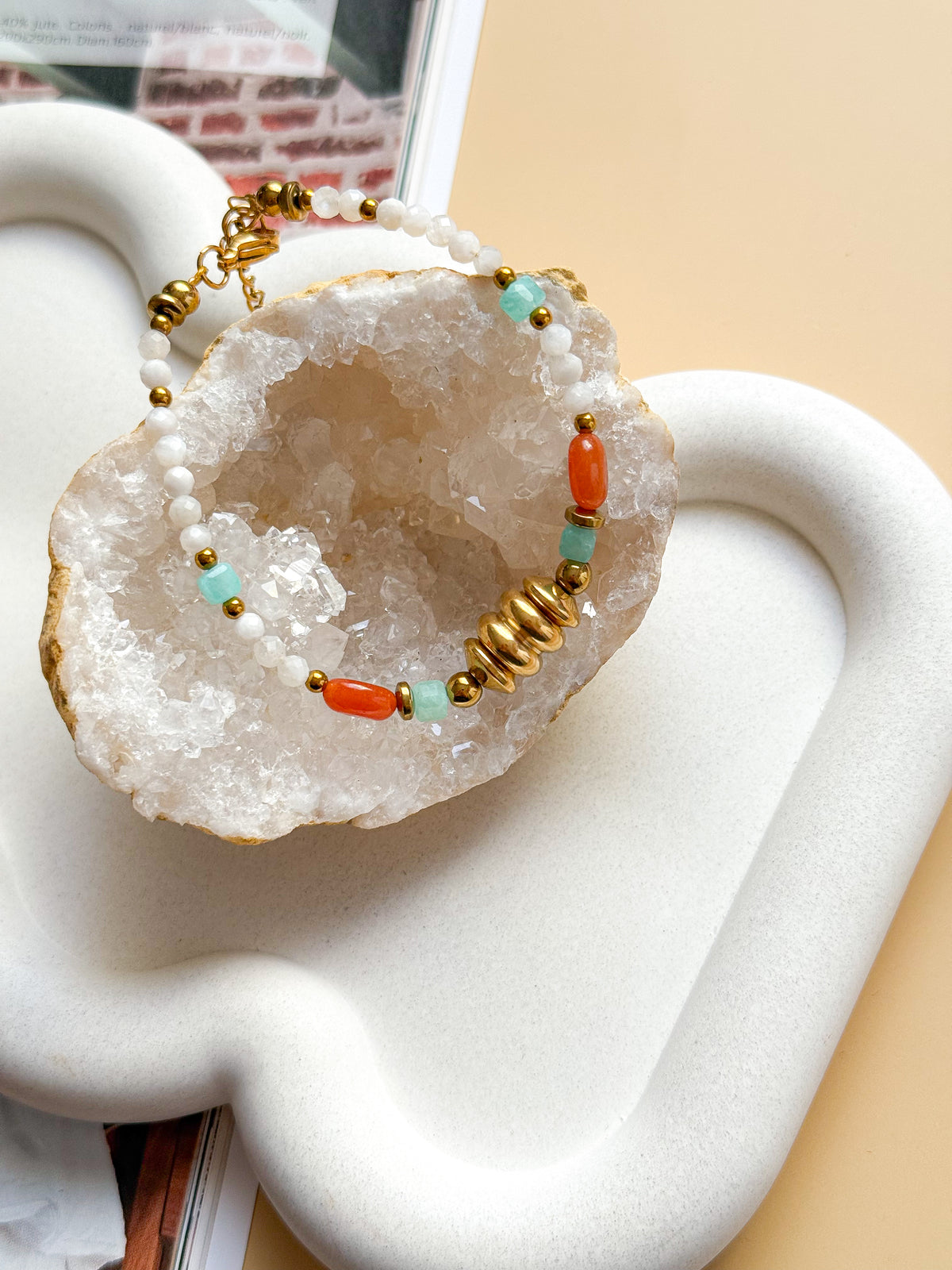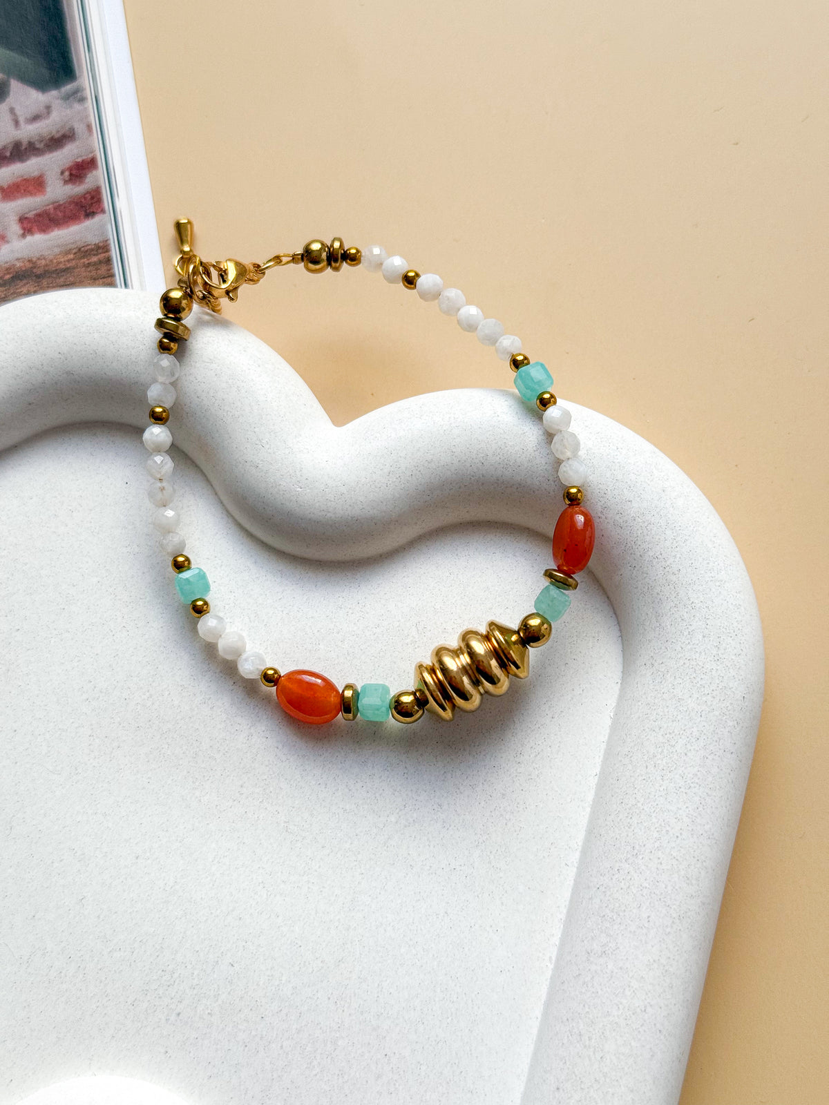 Matériaux : Acier inoxydable, pierre de Lune, Aventurine orange, Amazonite