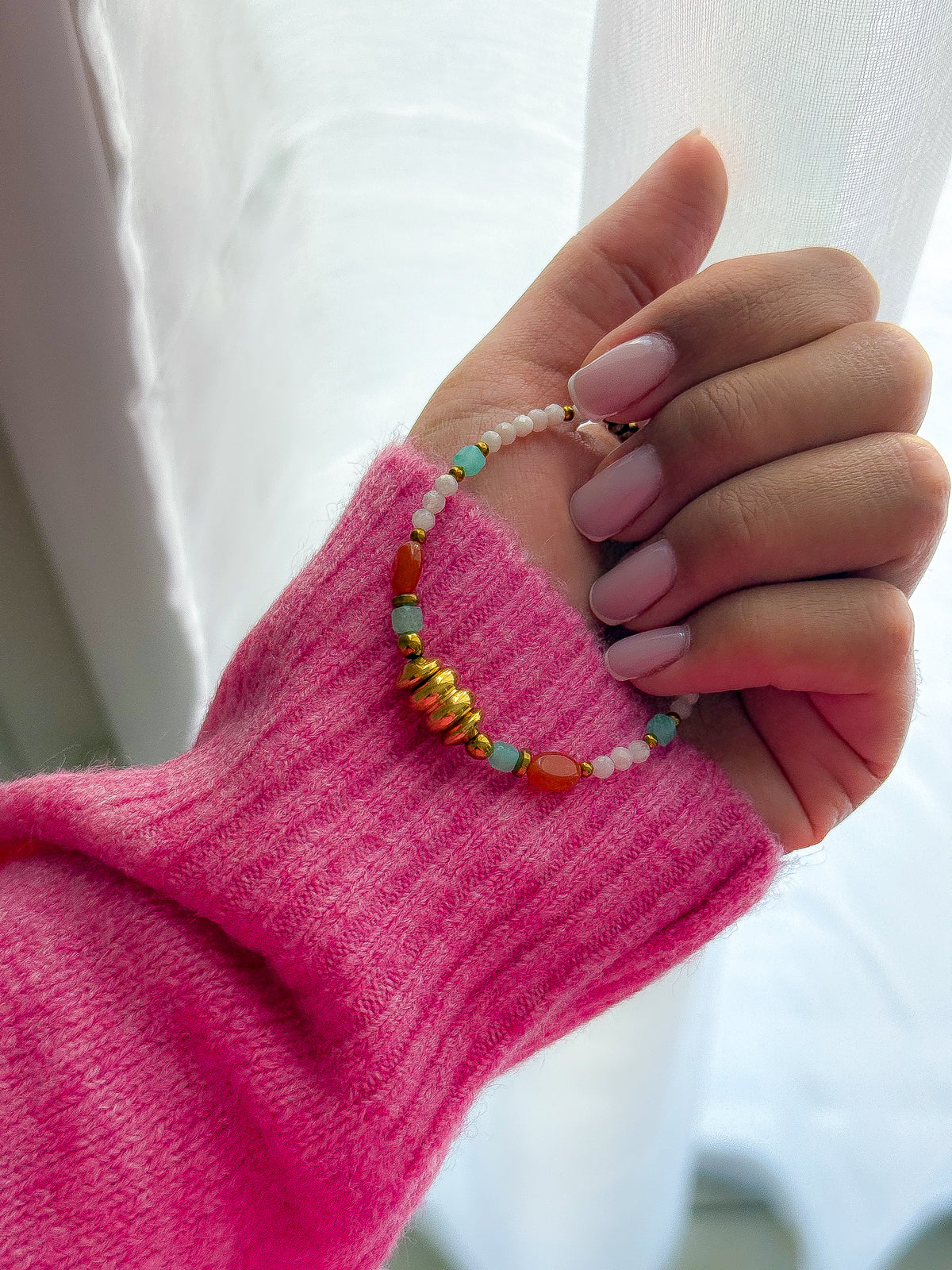 Les bijoux sont conçus en acier inoxydable et en pierres naturelles, ce qui leur offre une résistance au quotidien.