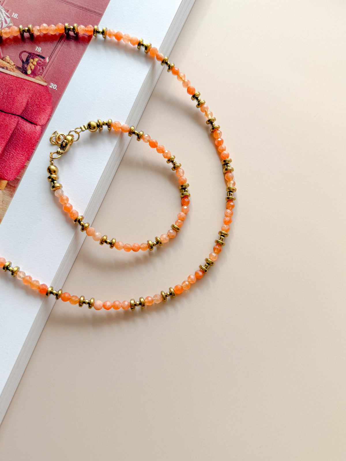 A delicate piece of jewelry made of small, bright, orange-tinted agate beads , perfect for everyday wear. ✨